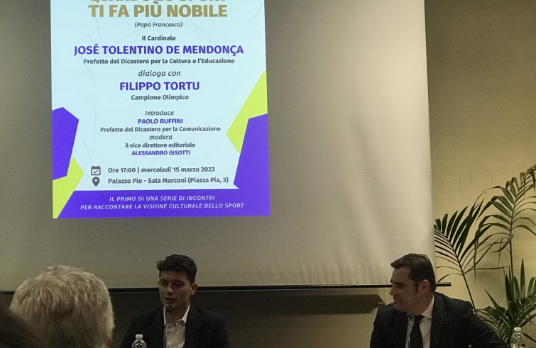 “Quando ripenso alle olimpiadi, penso a quando ho tagliato il traguardo e ho pensato a tutte le persone in tribuna che mi vogliono bene e mi hanno aiutato a conseguire questo obiettivo. Se penso allo sport non penso al sacrificio: quello che insegna lo sport è soprattutto confrontarsi con te stesso; ti mette di fronte ai tuoi più grandi sogni e alle tue più grandi paure. Ti permette di capire chi sei”. Lo ha detto il campione olimpico Filippo Tortu, dialogando questa sera a Palazzo Pio con il card. José Tolentino de Mendonça, prefetto del Dicastero per la cultura e l’educazione, nel primo degli incontri promossi da Athletica Vaticana, la polisportiva ufficiale della Santa Sede. “Durante l’olimpiade – ha proseguito il campione – ho capito che la cosa più importante è avere dato tutto me stesso per essere lì condividendo un percorso con persone che sono diventate una famiglia per me. L’importante per me era essere consapevole di avere dato tutto per essere lì. Cinque giorni che mi hanno profondamente cambiato. Ho capito quanto sia importante essere in pace con se stessi per essere in pace con gli altri”. “Per correre più veloce – ha affermato ancora Tortu – devi fidarti e lasciarti trasportare da quello che hai fatto durante la preparazione; arrivare in campo molto sereno, sicuro di tutto il lavoro di allenamento fatto. Più sono sereno più riesco a correre veloce, senza forzare. I piedi bisogna farli andare e seguirli”. Rispondendo ad una domanda sulla figura dell’allenatore, Tortu ha spiegato che suo padre, che è anche il suo allenatore, lo ha sempre messo di fronte alla consapevolezza del tipo di disciplina richiesto. “Tu sai che devi fare queste cose – gli diceva –. Puoi farle o no. Se vuoi sbagliare sei libero di farlo”. “Io – ha spiegato – ho pensato che non volevo sbagliare”. Quindi la rievocazione dell’incontro con il Papa: “Mi tremavano le mani, non mi era mai successo con nessuno”. Sottolineando l’importanza di “correre senza disperdere energie”, il campione ha assicurato che “la cosa più importante è avere il controllo e la consapevolezza di quanto devi fare: è questo che ti fa esprimere anche al di sopra di quanto tu pensassi di poter fare”. Infine ha ribadito: “Non mi piace parlare di sacrificio: è la vita che ho scelto, che mi piace. Io mi sono votato allo sport: mi fa stare bene e i sacrifici non mi pesano. L’obiettivo dello sport è essere la versione migliore di te stesso, fisicamente e mentalmente”.