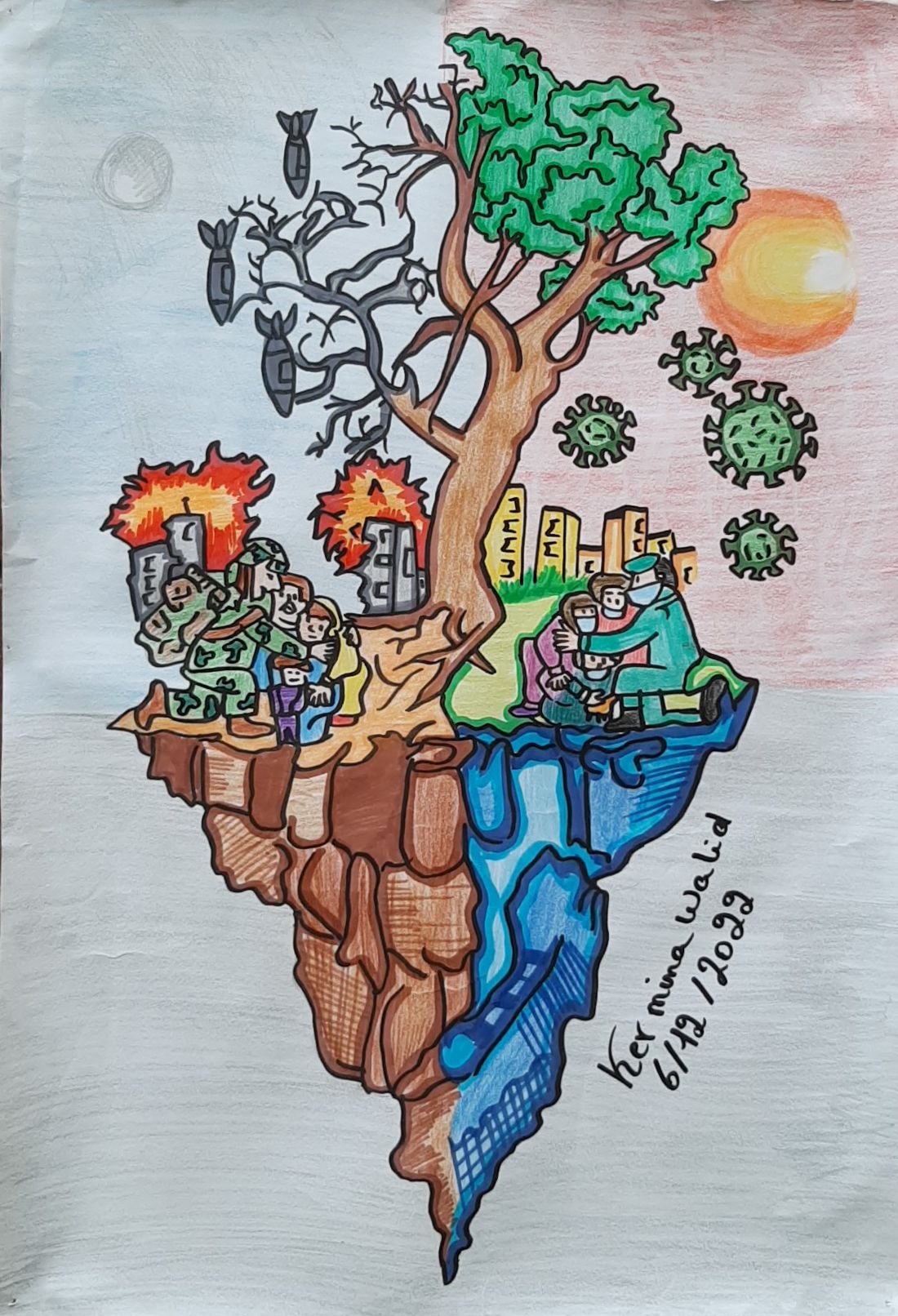 Tra le scuole secondarie di I grado, Jestin Jackin della Nemesia Academy di Bangalore, in India, ed Elison Nadeem della St. Anthony High School di Faisalabad, in Pakistan, sono i vincitori del primo premio ex aequo. Il disegno inviato dallo studente indiano mette in luce l’importanza del dialogo nel cammino verso la carità. La giovane Elison, invece, si sofferma sul potere evocativo delle parole: “Your wings already exist, all you have to do is fly (Le tue ali esistono già, devi solo usarle per volare)”. Come le sue farfalle, che sembrano indicare la strada. Infine, tra le scuole secondarie di II grado, il primo premio per la sezione disegno è stato assegnato a Kirmina Walid dell’Ecole Sainte Anne al Cairo, in Egitto, che nei suoi disegni ha rappresentato il bisogno di “cura”, che dovrebbe caratterizzare il rapporto con gli altri e con il mondo.