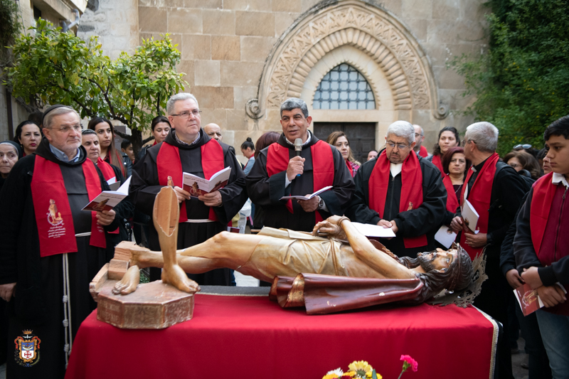 Nel corso della Via Crucis i professori hanno portato la Croce mentre i circa 500 bambini hanno indossato una sciarpa rossa con l’immagine della Statua della Flagellazione profanata da un estremista ebreo il 2 febbraio scorso. “Molte chiese e cimiteri cristiani – si legge nel testo pervenuto al Sir – negli ultimi mesi hanno subito alcuni atti di violenza per un fanatismo religioso che preoccupa e ha scosso la comunità cristiana, che già nel quotidiano non ha una vita facile, a causa dei continui cambiamenti geopolitici, e i cristiani sono i primi a pagare le conseguenze. Una vera Via Crucis per molti di loro, che con coraggio e resilienza rimangono nella città santa, con la speranza di un futuro migliore. Essi rappresentano un vero miracolo di Dio. La nostra risposta a queste azioni violente è stato il perdono, la preghiera. Sulle sciarpe abbiamo scritto la preghiera di Gesù sulla croce: ‘Padre, perdona loro, perché non sanno quello che fanno’. Non bisogna mai rispondere alla violenza con la violenza ma con l’amore, il perdono e la pace!”, conclude padre Faltas.