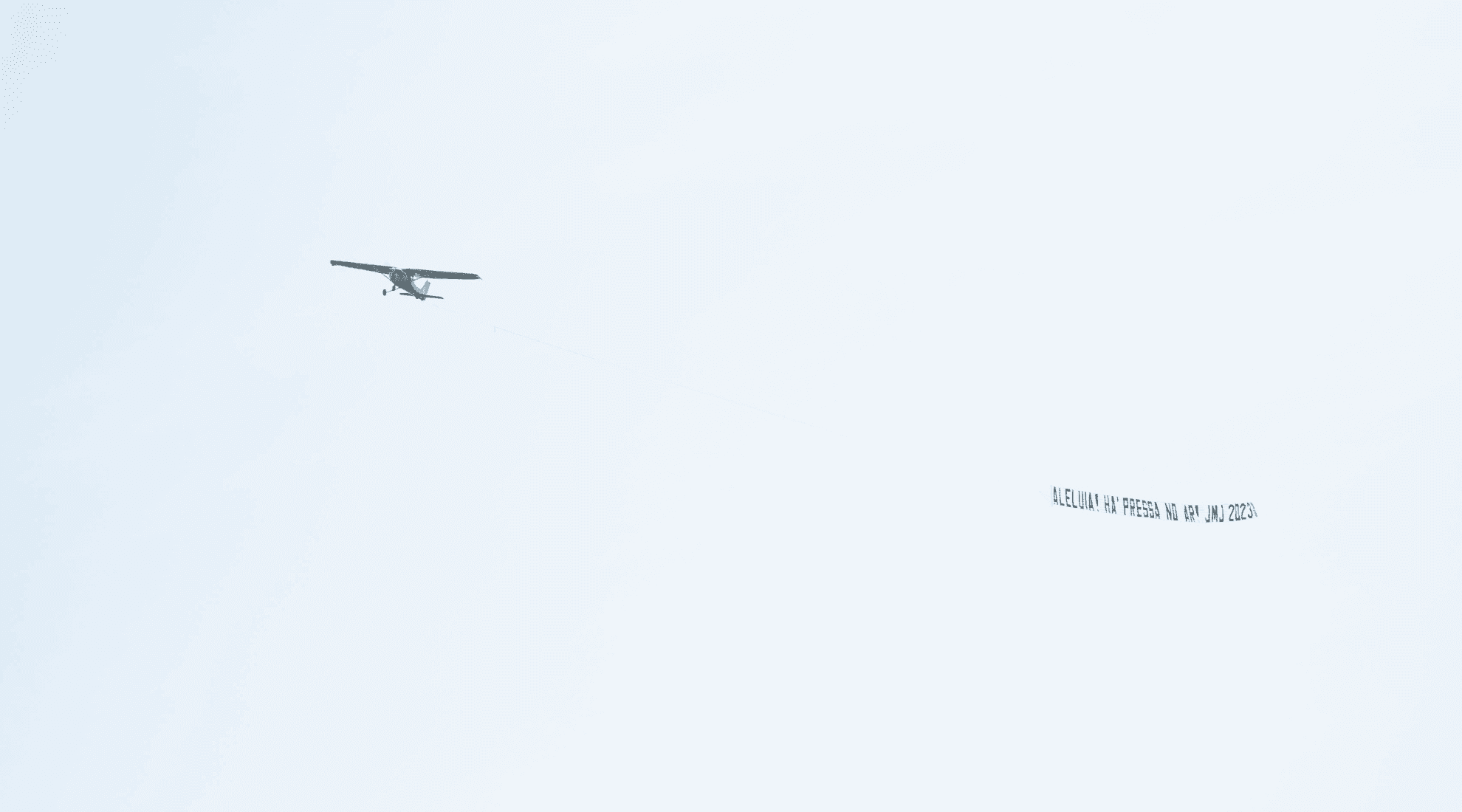 Nella domenica di Pasqua, 9 aprile, l’icona della Madonna Salus Populi Romani, simbolo, con la Croce, della Giornata mondiale della gioventù (Gmg), ha sorvolato in aereo la diocesi di Coimbra che ospita in questo mese di aprile il pellegrinaggio dei simboli della Gmg. Il sorvolo è iniziato con la benedizione di mons. Virgílio Antunes, vescovo di Coimbra, presso l’aerodromo municipale. Quindi l’aereo è decollato mostrando uno striscione con la scritta “Hallelujah! C’è una corsa nell’aria! Gmg 2023”, che annunciava la Risurrezione del Signore.