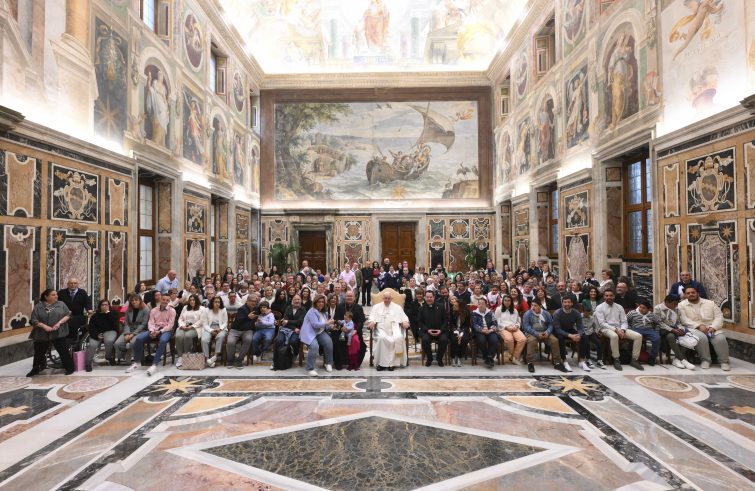 “Il cammino della vita è come quella Via Crucis che organizzate ogni anno per accompagnare il Nazareno. Da una parte bisogna preparare tante cose, ascoltare, imparare, sperimentare; aiutarsi, insomma, avendo spesso l’umiltà di riconoscere che da soli non ce la facciamo. Poi bisogna chiedere al Signore il coraggio di uscire in strada, portando la sua immagine perché tutti la possano contemplare. E così porti Gesù agli altri, anche se non te ne accorgi, e lo porti con i tuoi gesti, con i tuoi canti, con le tue preghiere. Ed è bello che nella nostra piccolezza possiamo essere testimoni di Gesù, missionari della sua misericordia, missionari del suo amore!”. Sono queste le parole con le quali Papa Francesco ha salutato i membri della “Fundación Madre Esperanza de Talavera de la Reina” di Toledo, ricevuti in udienza questa mattina in Vaticano per i 50 anni dalla fondazione. “Nella vita, come in quella Via Crucis, tutti abbiamo un lavoro, un compito. Gesù ci guarda ed è contento della nostra fatica e dell’amore che siamo capaci di trasmetterci”, ha proseguito Bergoglio evidenziando l’importanza del lavoro di squadra capace di far convergere le diverse capacità di ciascuno in un risultato finale che appartiene a tutti. “Tutti insieme, con Gesù, possiamo fare tante cose buone. E così siete le mani di Gesù, quando lavorate insieme. Siete anche i suoi piedi, la sua voce, il suo cuore”, le parole di Papa Francesco che ha indicato lo scopo di ognuno ogni giorno, “almeno per i prossimi cinquant’anni: lavorare insieme e ringraziare pieni di gioia perché Gesù ci ha scelti per questa grande missione”.