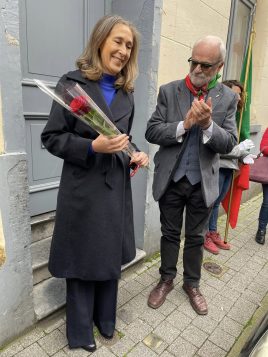 L’ambasciatore Federica Favi con il presidente dell’Anpi Bruxelles Roberto Galtieri (Foto Anpi Bruxelles)