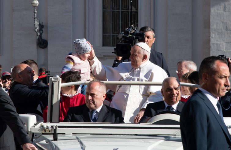 Papa Francesco ha iniziato anche oggi l’udienza del mercoledì facendo salire a bordo della jeep bianca scoperta sei bambini, maschi e femmine, tutti in divisa rossa con colletto bianco. Mentre si godevano il giro tra i vari settori della piazza delimitati dal colonato del Bernini, il Papa ha baciato e accarezzato i bambini che i solerti uomini della Gendarmeria vaticana hanno sottoposto, di volta in volta, al suo abbraccio. Oggi piazza San Pietro, baciata da un sole primaverile e da un cielo terso d’azzurro, è gremita di fedeli in ogni ordine di posto. In prima fila quelli accalcati lungo le transenne, muniti dell’immancabile telefonino per le foto e i selfie, al passaggio della papamobile. Molte le bandiere e gli striscioni, tra cui uno che recita: “Papa Francesco i sordi ti amano”.