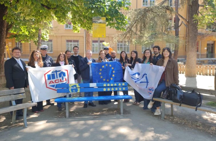 Delle Acli, in particolare, è stata la scelta di dedicare la panchina del Quartiere Santo Stefano a Tina Anselmi, definita “partigiana cattolica non per rimarcare una differenza o essere divisivi, al contrario per ribadire l’universalità della Resistenza, cui il mondo cattolico ha dato un contributo fondamentale e verso cui, se mai, ha peccato in seguito di eccessiva reticenza nel rivendicare il proprio operato”, ha detto la presidente delle Acli, Chiara Pazzaglia. Presenti anche i dirigenti scolastici dell’IC20 e IC21, rispettivamente Agostino Tripaldi e Ombretta Pavoni, che hanno ricordato ai loro alunni che “l’Europa siamo tutti noi e siete anche voi”, rimarcando l’importanza della partecipazione e raccomandandosi con gli amministratori locali presenti di sentire la responsabilità dei valori che trasmettono ai ragazzi. I due dirigenti, infatti, hanno oggi accompagnato una nutrita rappresentanza di studenti, con cui le Acli, da inizio anno, hanno svolto laboratori sul tema della legalità e della cura dei beni comuni. Proprio a questi ultimi ha fatto riferimento Filippo Diaco, consigliere comunale e presidente della IX Commissione sport, volontariato e disabilità, che con i ragazzi presenti ha condotto diverse attività durante l’anno scolastico, per mostrare loro l’importanza di avere cura della propria città, compresa quella che, ora, è la “loro panchina”. E mentre la presidente di Quartiere, Rosa Maria Amorevole, e Claudia Malerbi, responsabile del Coordinamento Donne Acli, hanno parlato ai giovani della figura di Tina Anselmi, Lorenzo Biagi, figlio del giuslavorista Marco, barbaramente ucciso dalle Brigate Rosse, ha portato una testimonianza relativa alle attività laboratoriali che anch’egli ha condotto quest’anno per conto delle Acli con le classi partecipanti. “Oggi è stata una vera festa dell’Europa”, ha commentato in chiusura la segretaria dei Giovani delle Acli, Rosa De Angelis. Una festa che culminerà con le celebrazioni del 9 maggio, “ma che oggi ha avuto un suo momento molto significativo, perché indirizzato ai più piccoli, che sono il nostro futuro”, ha concluso De Angelis.
