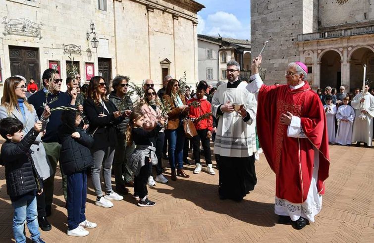 “Ricordando e contemplando la Passione di Gesù vediamo come in uno specchio tutte le sofferenze dell’umanità. E come non pensare, in particolare, alla guerra in Ucraina e in altre parti del mondo e alla tragedia ripetuta dei migranti e dei profughi nel mar Mediterraneo? Ma non come se fossero presentate in televisione. Lo schermo è uno specchio inanimato che riflette tutto l’orrore del mondo, ma è indifferente; non soffre, non ama, è un vetro freddo. E lascia l’uomo nella sua solitudine”. Lo ha detto ieri l’arcivescovo di Spoleto-Norcia, mons. Renato Boccardo, celebrando la messa della Domenica delle Palme nella basilica cattedrale. La liturgia è iniziata in piazza Duomo dove il presule ha benedetto i rami di ulivo. “Quando guardiamo Cristo, invece, vediamo uno specchio fatto di compassione vivente e di amore; Cristo ha preso su di sé ciò che noi non possiamo sopportare: l’ingiustizia, il male assurdo, l’irresponsabilità, la vigliaccheria, le situazioni inestricabili, il non-senso, la morte. In Gesù, scopriamo la nostra sofferenza e la nostra infelicità, poiché egli ci prende così come siamo. E per mezzo di lui Dio perdona a tutti, ama tutti. In Gesù, noi vediamo il nostro stesso volto trasfigurato nell’amore vivente di Dio”. “Il ramo di ulivo benedetto che portiamo a casa – ha aggiunto – ci ricorderà la grande lezione di un Dio che ha accolto la nostra umanità fino alla morte, e di noi che siamo stati accolti e riconciliati e redenti nel mistero del suo popolo, in mezzo al quale siamo mandati per rinnovare i gesti di compassione e di tenerezza dei quali, con meravigliata gratitudine, ci riconosciamo destinatari da parte di Dio”.
