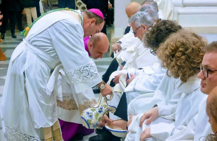 “Il mondo si guarda dal basso verso l’alto: è questa l’espressione piena dell’amore”: lo ha detto il vescovo di Lamezia Terme, mons. Serafino Parisi che ieri sera, in Cattedrale, ha presieduto la Messa in Coena Domini, aprendo le celebrazioni del Triduo Pasquale. “La celebrazione dell’Eucaristia – ha spiegato – non è un semplice ricordo, non è semplice memoria, ma è memoriale: tutto ciò che è accaduto in quel momento, noi lo riviviamo. Nell’Eucaristia, l’Eternità si fa presente a noi, nel nostro spazio di umanità, e noi siamo coinvolti in prima persona, dentro il nostro presente. Oggi, adesso, qui, nel presente della nostra vita e della nostra storia. Non siamo spettatori ma protagonisti di quell’opera della salvezza che continua a realizzarsi nel tempo”. “Per noi credenti – ha aggiunto – non ci sarebbe neppure bisogno di incoraggiarci ad andare a Messa: a volte sembra che dobbiamo fare chissà quali spot pubblicitari o si ricorre a chissà quali estrosità per attirare un po’ di gente. La forza dell’Eucaristia non ha bisogno del nostro protagonismo. La forza dell’Eucaristia è nell’incontro con il Signore per questo va celebrato nella gioia, nella festa, come il passaggio di Dio tra le case e le tende del popolo d’Israele in Egitto, che leggiamo nel libro dell’Esodo”. E proprio sul senso della gioia si è soffermato il presule, osservando come “spesso noi sacerdoti sembriamo arrabbiati con il mondo, come se tutti i problemi del mondo fossero sulle nostre spalle. Domandiamocelo: perché uno che non crede o è in ricerca dovrebbe venire nelle nostre comunità? Per angosciarsi ancora di più, incrociando il nostro sguardo triste, raccapricciato, impensierito? Noi partecipiamo alla celebrazione eucaristica non per fare un piacere a Dio, ma per prendere forza, per riprendere il respiro, per trarre il principio della nostra vita e del nostro agire nel mondo”. Lavando i piedi ai suoi apostoli, ha spiegato mons. Parisi, “Gesù ha indicato, ai suoi discepoli e a noi, la prospettiva dalla quale guardare il mondo. Non dobbiamo guardare il mondo dall’alto verso il basso, ma chinati a terra, ai piedi dell’uomo; dobbiamo guardare il mondo dal basso verso l’alto. Questa è l’espressione piena dell’amore: la capacità di dire all’uomo che è per terra che, guardando verso l’alto, l’umanità può essere risollevata”.