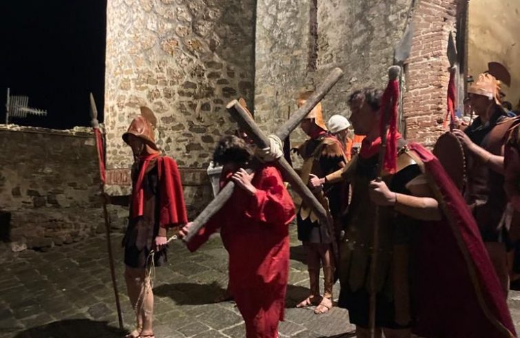 Una grande serata di fede, di devozione e di comunità quella vissuta la sera del Venerdi Santo a Castiglione della Pescaia, dove per la prima volta è stata vissuta la Via Crucis drammatizzata “con la stessa passione di Gesù”. Oltre 200 tra attori e comparse, più di un migliaio le persone intervenute per seguire quello che resta prima di tutto un momento di preghiera e di meditazione sulle ultime ore di Gesù, la sua passione e la sua morte sulla croce per la salvezza del mondo. La pioggia non ha scoraggiato tutti coloro che hanno dato vita a questa sacra rappresentazione- Con una sincronia perfetta, mentre la voce narrante ha detto che Cristo, dopo aver compiuto tutto, spirò, un tuono ha rombato nel cielo, rimandando così con la mente a quanto narrano i vangeli: alla morte di Cristo ci fu un grande temporale e un terremoto, mentre il velo del tempio si squarciò in due.