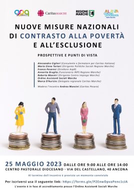 Giovedì 25 maggio, dalle ore 9 alle 14, presso il Centro pastorale diocesano di Ancona (via del Castellano, 40) si terrà un convegno organizzato da Caritas Marche e dall’Azienda Servizi alla persona Asp 9 di Jesi per approfondire il decreto legge 48 del 2023 e, in particolare, la sezione dedicata alle nuove misure nazionali di contrasto alla povertà e all’inclusione. Alessandro Ciglieri, consulente e formatore di Caritas italiana, tratterà l’aspetto normativo e la questione dell’assegno di inclusione e supporto per la formazione e il lavoro. Maria Elena Tartari, dirigente delle politiche sociali della Regione Marche, parlerà delle prospettive e delle sinergie delle politiche regionali per inclusione e contrasto alle povertà. Franco Pesaresi, direttore dell’Azienda Asp 9, approfondirà l’attuazione a livello territoriale di queste misure, il ruolo e le prospettive degli Ambiti territoriali sociali. Annarita Bruglia, dirigente Inps della Regione Marche, presenterà le azioni per l’integrazione territoriale e Roberta Maestri, dirigente del Centro Impiego Regione Marche, esporrà il ruolo e le prospettive del Centro per l’impiego e le strategie per l’inclusione lavorativa. Marco D’Aurizio, delegato regionale di Caritas Marche, si soffermerà sui dati delle Caritas delle Marche. L’incontro sarà moderato da Andrea Mancini di Caritas Pesaro. L’evento è in fase di accreditamento presso l’Ordine degli assistenti sociali Marche. Per iscriversi: https://forms.gle/P2EnwDpvaPenc1cJA.