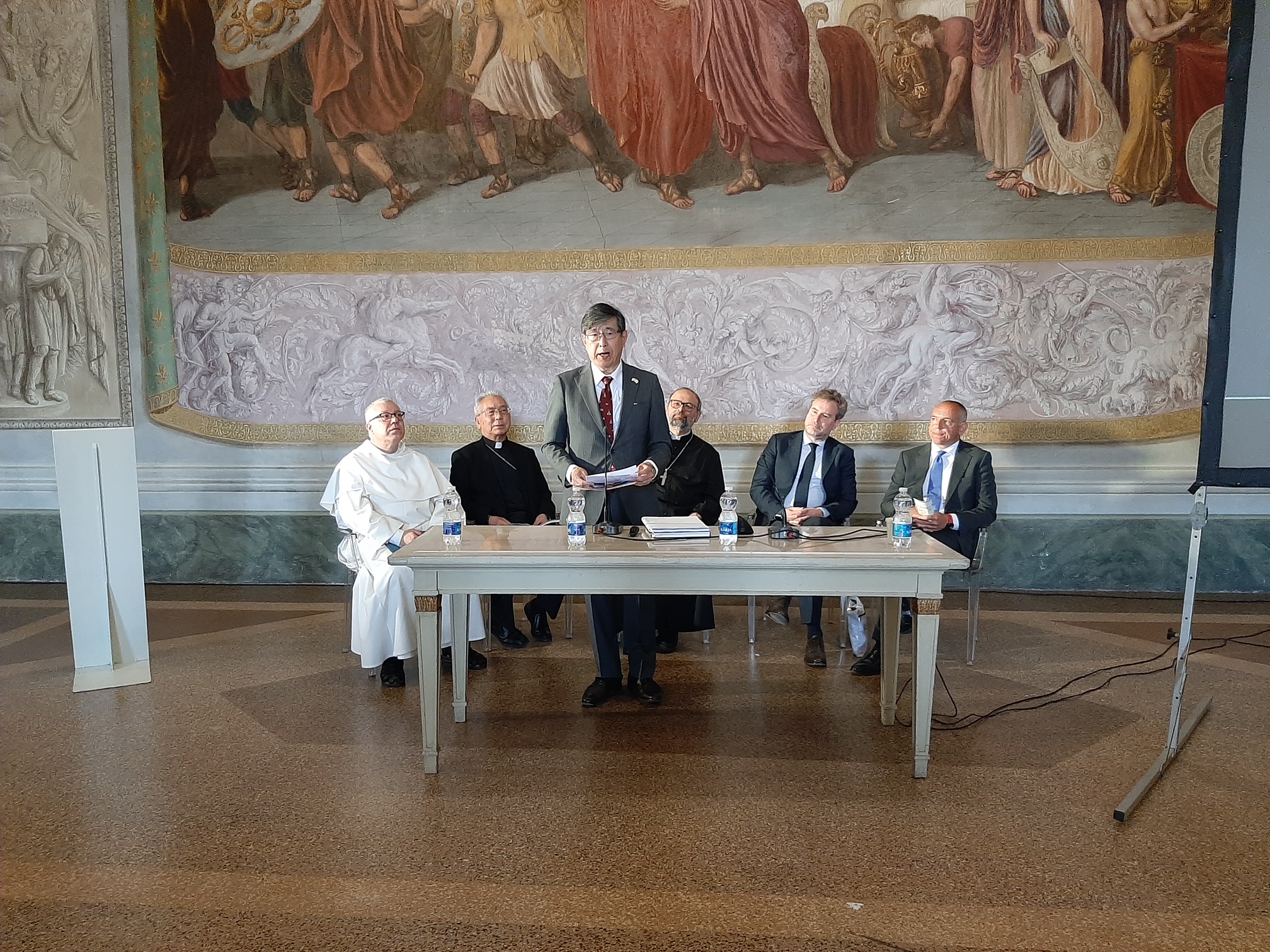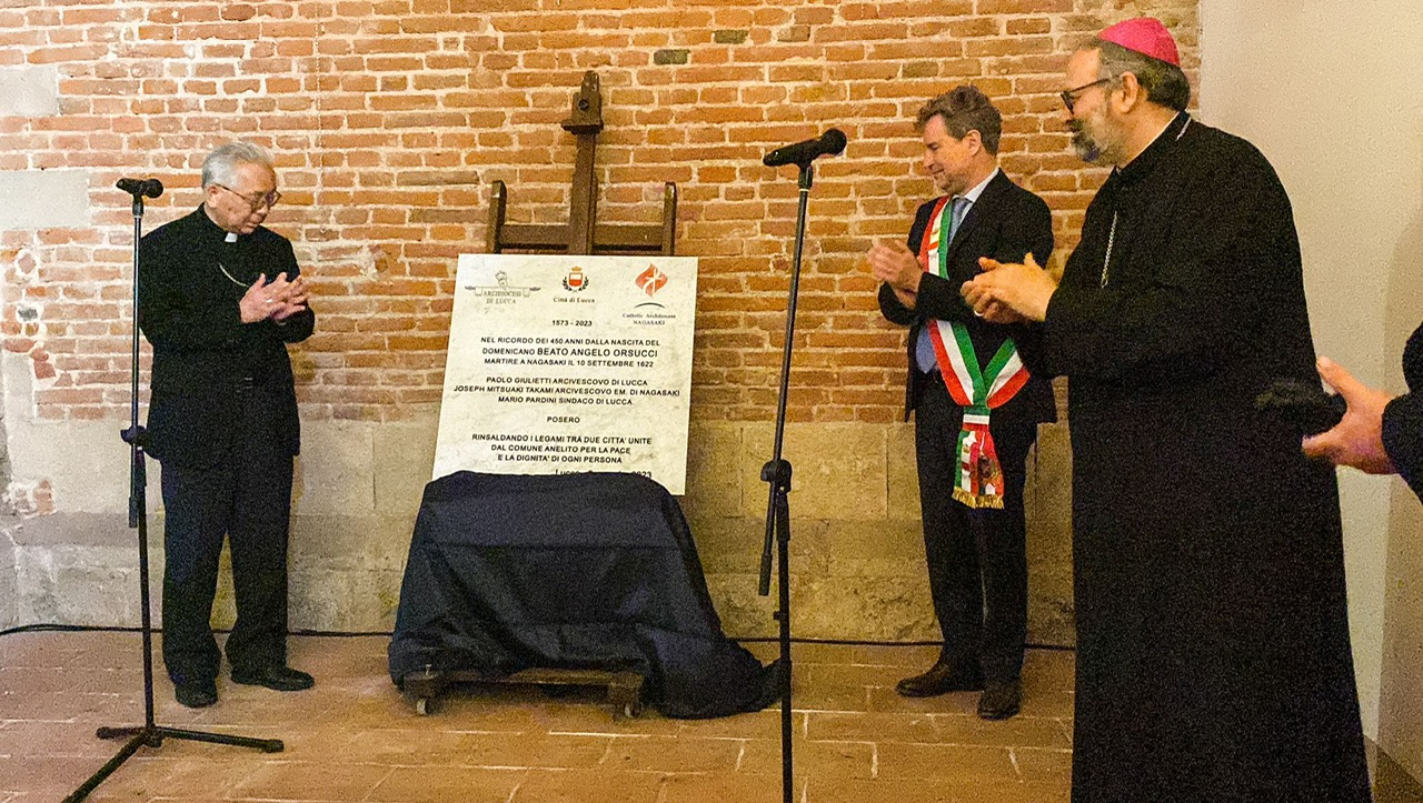 Protagonista dal 6 all’8 maggio è stata la delegazione giapponese, spiega una nota dell’arcidiocesi di Lucca, diffusa oggi. Non solo per la partecipazione attiva al convegno, ma anche perché il giorno 8 maggio al mattino ha partecipato alla inaugurazione della lapide all’interno del complesso di San Romano, l’ex convento domenicano dove Angelo Orsucci entrò e prese i voti. Inoltre, l’arcivescovo emerito di Nagasaki, mons. Joseph Takami, ha lì offerto la propria testimonianza di discendente diretto dei “cristiani nascosti”, parlando anche della situazione di minoranza che in Giappone tuttora vivono come comunità cristiana. Poi accompagnati dall’arcivescovo Paolo Giulietti, da vari rappresentanti del clero lucchese e da autorità civili e militari, la delegazione ha reso omaggio anche alla lapide posta in via Guinigi sulla facciata di Palazzo Orsucci dove il missionario lucchese nacque. Infine, proprio nel pomeriggio dell’8, mons. Takami ha inaugurato l’itinerario delle mostre tagliando il nastro alla chiesa di san Cristoforo. Era presente anche mons. Gian Carlo Perego, presidente della Fondazione Migrantes. Già oggi, martedì 9 maggio, si sono recate in visita varie scolaresche: è possibile prenotare visite guidate su https://www.diocesilucca.it/thesaurumfidei/prenota-una-visita/.