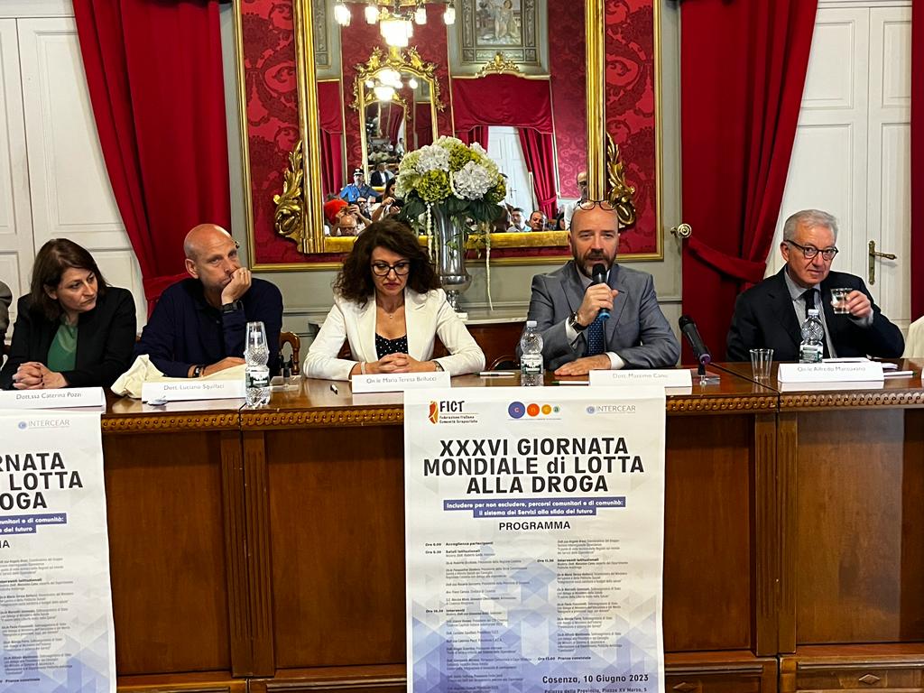Oggi a Cosenza, capitale del volontariato 2023, presso il palazzo della Provincia, la Fict, l’Intercear e il Cnca, insieme alle altre principali reti del pubblico, del privato sociale e alle comunità scientifiche (Sitd e Sipad), si sono confrontate durante il convegno “Includere per non escludere, percorsi comunitari e di comunità: il sistema dei servizi alla sfida del futuro”, promosso in vista della XXXVI Giornata mondiale di lotta alla droga, con la partecipazione di diversi rappresentanti istituzionali del Governo, tra i quali il viceministro del Lavoro e delle Politiche sociali, Maria Teresa Bellucci, e il sottosegretario di Stato con delega alla Presidenza del Consiglio dei ministri e al Dipartimento Politiche antidroga (Dpa), Alfredo Mantovano.