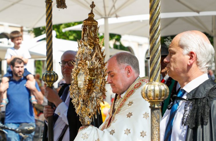 Domenica 11 giugno, nella solennità del Corpus Domini, la festa nella quale i cattolici testimoniano la presenza di Gesù Cristo nel sacramento dell’Eucarestia, il vescovo di Bolzano-Bressanone, mons. Ivo Muser presiede la celebrazione bilingue alle ore 9 nel duomo di Bolzano. Dopo la santa messa, lungo le vie del centro storico si snoda la tradizionale processione con i fedeli, le associazioni ecclesiali, la banda e i vari gonfaloni. Un’ostia consacrata viene portata in processione sotto un baldacchino ed esposta alla pubblica adorazione fino in piazza Walther, prima della benedizione finale.