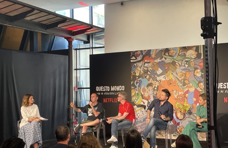 “Il titolo nasce da un brano del cantautore Path e nella serie fa riferimento non solo a Zero ma ai vari personaggi che troviamo. Indica un auspicio rispetto al mondo intorno, ai momenti di crisi”. Lo afferma il fumettista e regista Michele Rech in arte Zerocalcare presentando la sua nuova serie animata per Netflix “Questo mondo non mi renderà cattivo” (6 episodi), prodotta dal colosso streaming insieme a Movimenti Production e a BAO Publishing, disponibile dal 9 giugno. È il secondo lavoro dell’autore per Netflix, dopo l’ampio successo raccolto nel novembre 2021 con “Strappare lungo i bordi”. Nell’evento stampa, nel pomeriggio di giovedì 8 giugno nella sede della Città dell’Altra Economia nel quartiere Testaccio, moderato dalla giornalista Marianna Aprile, Zerocalcare ha raccontato come è nato il progetto: “La serie è stata scritta prima di ‘Strappare lungo i bordi’, ma a quel tempo non ero ancora pronto a realizzarla, perché non mi sentivo sicuro: ero infatti alle prime armi con l’animazione. Dopo ‘Strappare lungo i bordi’ è stato tutto più facile”.