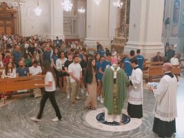 La celebrazione, iniziata alle ore 19 e accompagnata nel canto dalla corale della parrocchia dei Santi Pietro Paolo e Donato di Corridonia, si è conclusa con una preghiera speciale e la consegna di un braccialetto/rosario da parte dell’arcivescovo a tutti i giovani presenti, molti dei quali in partenza per l’ormai imminente Gmg di Lisbona, con l’invito ad annunciare sempre, protetti dalla Vergine Maria, la gioia di aver incontrato il Signore Gesù.