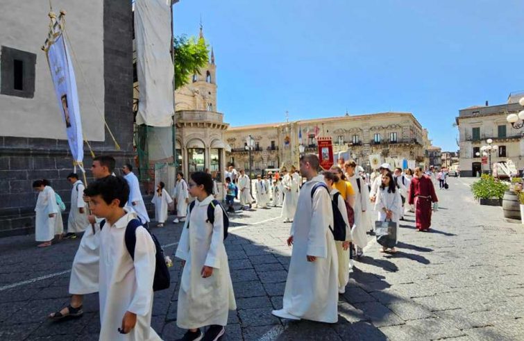 La Diocesi di Acireale ha celebrato lo scorso anno i 150 anni della sua nascita e, ricordando ancora quest’evento, quasi 200 giovani nei giorni scorsi hanno invaso le strade del centro storico di Acireale per il tradizionale raduno dei ministranti, organizzato da mons. Giovanni Mammino, rettore del Seminario Vescovile di Acireale. Quattro i momenti che hanno scandito la giornata e invitato i giovani a “essere Chiesa, a vivere nell’amore, a seguire nella gioia Gesù e a essere testimoni forti e coraggiosi”. Ogni momento ha avuto un luogo simbolo, Il Museo Diocesano, “luogo di arte, storia e cultura, importante per conoscere le nostre radici fatte di solidarietà e unità”, la Casa San Camillo, “luogo dedicato all’accoglienza dei poveri, dove è possibile consumare due pasti al giorno, farsi una doccia e avere dei vestiti puliti”, l’Oratorio San Filippo Neri, “luogo dedicato al gioco, alla gioia, all’allegria per imparare a regalare un sorriso a chi si fa nostro prossimo” e la Basilica di San Sebastiano martire, “luogo che ci rimanda all’eroismo della testimonianza nella vita quotidiana”. A chiudere l’evento la Messa presieduta dal vescovo Antonino Raspanti che durante l’omelia ha sottolineato l’importanza di seguire Gesù con coerenza e fedeltà.