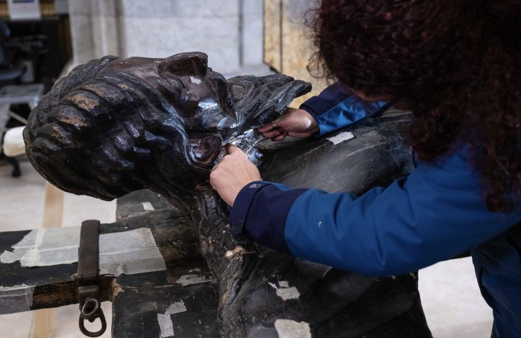 Il restauro del Volto Santo, il primo intrapreso in epoca moderna, è innanzitutto finalizzato alla conservazione di un’opera ultra millenaria, ma è al contempo occasione straordinaria, come sempre accade in progetti di questa importanza e complessità, per cercare di dipanarne l’intricata vicenda storica e materiale. I risultati di questo grande lavoro di ricerca, comunque orientati e finalizzati al restauro del celebre crocifisso lucchese, saranno divulgati ai media con una conferenza stampa e al grande pubblico in un convegno che avranno luogo rispettivamente il 15 e il 16 settembre prossimo a coronamento delle celebrazioni in onore della Santa Croce. Congiuntamente a questa fase diagnostica e in contemporanea con essa sono iniziate le prime fasi del restauro vero e proprio: dopo il trattamento anossico durato trenta giorni, durante il quale la scultura è stata collocata all’interno di un apposito sacco in atmosfera protettiva priva di ossigeno per eliminare eventuali attacchi biologici, si è provveduto a rimuovere le veline protettive applicate sull’intera superficie dell’opera per effettuare il trasporto in sicurezza. Successivamente si è proceduto alla fermatura della pellicola pittorica là dove si presentava instabile, e ad una prima pulitura superficiale sia all’esterno che all’interno del crocifisso, che a tergo si presenta interamente scavato. Gli aggiornamenti sulle fasi di restauro sono periodicamente disponibili sull’apposito sito web dedicato. Le istituzioni compartecipi di questo impegno sono l’Ente Chiesa cattedrale, l’Opificio delle Pietre Dure di Firenze, la Soprintendenza Abap per le province di Lucca e Massa Carrara, oltre ad un team di esperti scientifici attivi presso vari istituti di ricerca di grande rilievo.
