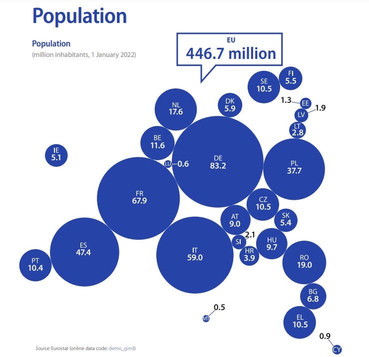 Nel 2022 il 28,6% della popolazione dell’Ue non poteva permettersi una vacanza di una settimana all’anno. Tra i due quinti e la metà della popolazione si trovava in questa condizione in Ungheria, Croazia, Bulgaria e Grecia. Il 62,5% in Romania; mentre il tasso di popolazione che non poteva andare una settimana in vacanza era un decimo in Svezia (10,2%) e più bassa in Lussemburgo (7,6%). È quanto emerge dall’edizione 2023 del rapporto di Eurostat “Key Figures in Europe” dove è possibile consultare dati per Paese sulla popolazione, i tassi di fertilità e l’invecchiamento, se una famiglia spende maggiormente in bevande o alimenti, sulla dipendenza energetica e altro. Ad esempio, nel 2020 e nel 2021, la popolazione dell’Ue è diminuita anche per l’impatto della crisi Covid-19. Al 1° gennaio 2022, nell’Ue vivevano 446,7 milioni di persone, ovvero 265mila in meno rispetto all’anno precedente e 750mila in meno rispetto al 1° gennaio 2020. In Italia si calcolano 59 milioni di abitanti a gennaio 2022. Nel dettaglio, tra il 1° gennaio 2012 e il 2022, la popolazione dell’Ue è aumentata di 6,2 milioni (1,4%) e “il fattore trainante di questa crescita è stata l’immigrazione netta”. Le differenze nei tassi di popolazione tra i Paesi Ue sono significative: al 1° gennaio 2022, il numero di abitanti variava da 0,5 milioni a Malta a 83,2 milioni in Germania. Insieme, Germania, Francia, Italia, Spagna e Polonia ospitavano quasi due terzi (66,1%) della popolazione dell’Ue. A questo link è possibile consultare il report.