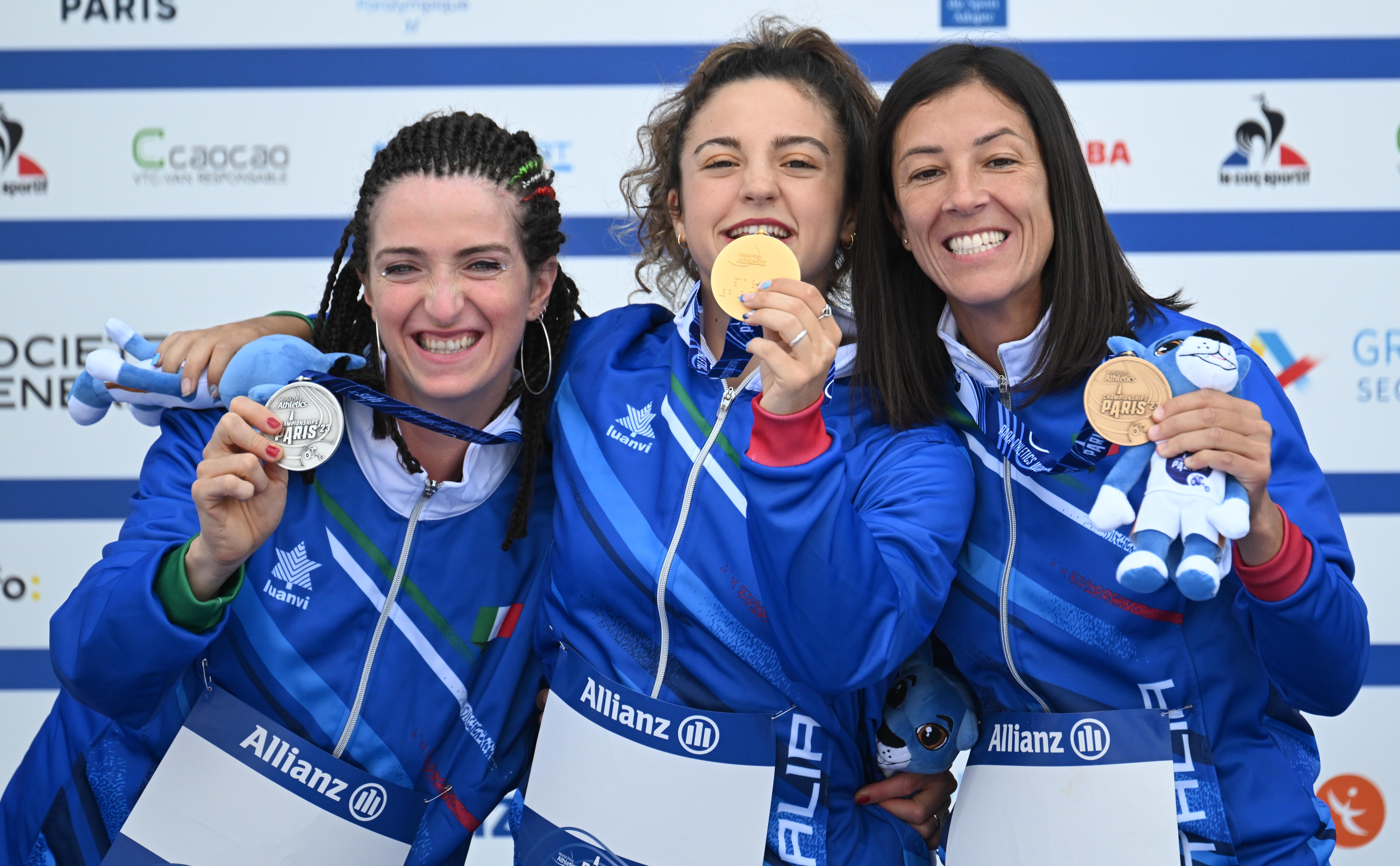 Assunta Legnante nel lancio del disco F11, Monica Contrafatto nei 100 T63, Valentina Petrillo nei 400 e 200 T12
