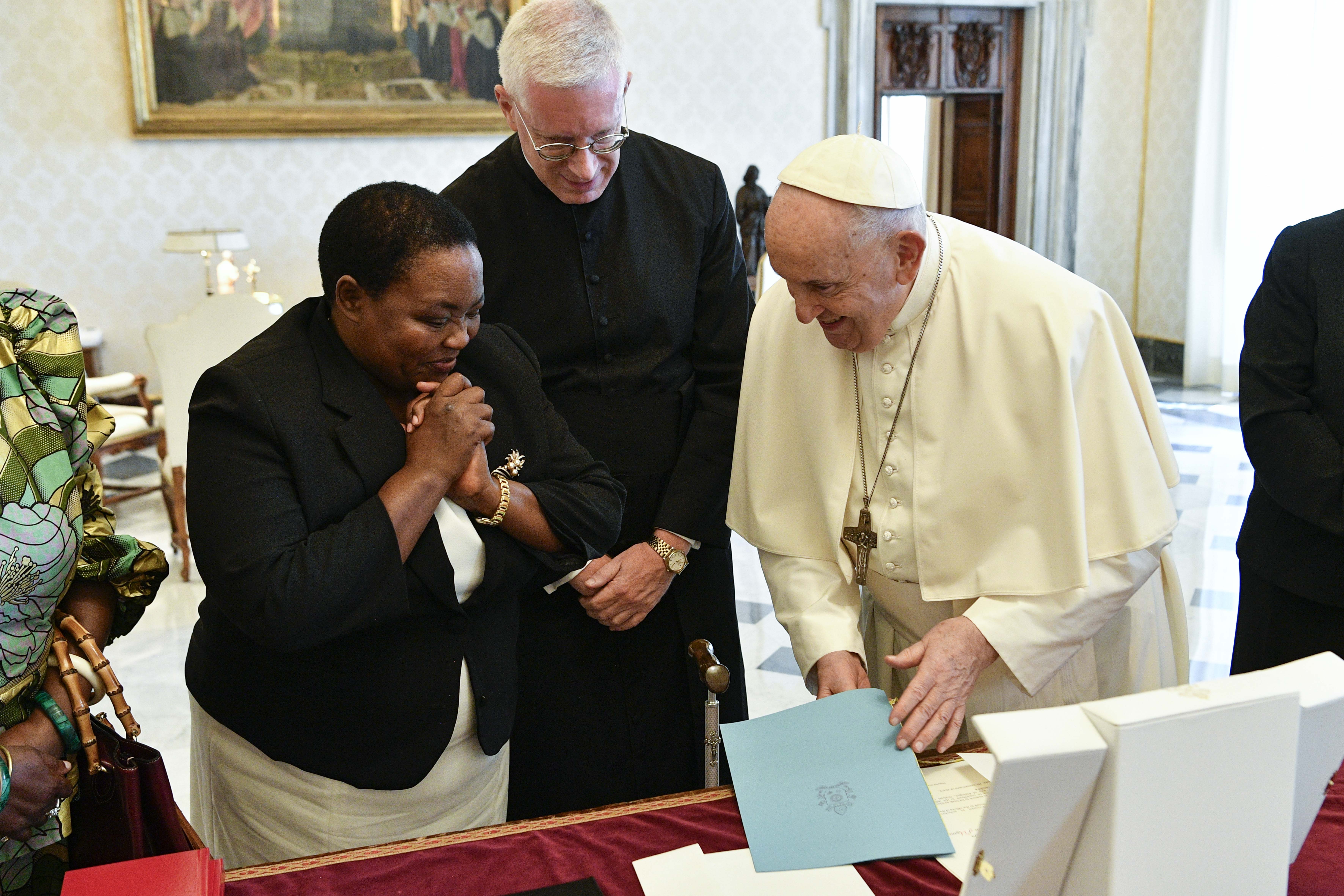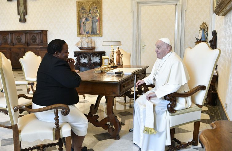 È durato circa 20 minuti il colloquio privato tra il Papa e Robinah Nabbaja, primo ministro di Uganda, che domani avrà un incontro in Segreteria di Stato. “Tra i temi trattati durante la conversazione – informa la Sala Stampa della Santa Sede –  il Papa è rimasto toccato dall’accoglienza ai migranti e ai rifugiati, provenienti non solo dalla regione africana, ma fin da Paesi dell’Asia centrale, offerta con generosità dalle istituzioni ugandesi”. Il Papa ha donato alla premier ugandese un’opera in bronzo raffigurante una colomba che porta un ramoscello d’olivo, con la scritta “Siate messaggeri di pace”, oltre ai consueti volumi  dei documenti papali, al messaggio per la pace di quest’anno, al Documento sulla Fratellanza umana e al libro sulla Statio Orbis del 27 marzo 2020, a cura della Lev.