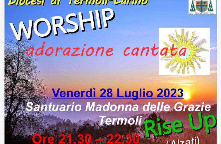 Venerdì 28 luglio, alle 21.30, al santuario della Madonna delle Grazie a Termoli si terrà il Worship “Rise up” (Alzati). “Worship – spiega un comunicato della diocesi – è un termine inglese che significa ‘preghiera di adorazione’. Fare worship è quindi adorare Dio, ma in questo caso specifico è pregare, adorare attraverso la musica. Questo stile di preghiera è tipico della chiesa cristiana protestante (ne é fiore all’occhiello il gruppo Hillsong United) e da qualche anno oramai ha iniziato a fare breccia nelle nostre realtà, in Italia, anche in chiese cristiano-cattoliche. Questo perché il Worship è una semplice ma universale lode a Dio”. Una serata di Worship “sarà ricca di canti, piena di preghiera personale silenziosa e della Parola di Dio. Ecco gli ingredienti del Worship: musica, preghiera, Parola. Il centro del Worship è l’ascolto della Parola di Dio e tutto è in funzione di questo: la Parola di Dio viene cantata attraverso i testi delle canzoni che non sono un riempitivo ma uno strumento per aiutarci a pregare con tutto noi stessi, ricordandoci che ogni battezzato faccia della propria vita una missione di annuncio del Regno di Dio”.