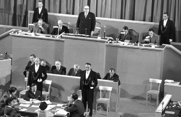 La prima sessione dell’Assemblea consultiva, divenuta poi Assemblea parlamentare del Consiglio d’Europa (Apce), si tenne mercoledì 10 agosto 1949, presso l’aula magna dell’Università di Strasburgo in Place Brant, vicino al centro della città. Lo segnala oggi il sito del Consiglio d’Europa. Il presidente provvisorio, lo statista francese Edouard Herriot, tenne una dichiarazione in apertura di seduta. Henri Spaak, ministro degli esteri belga, in seguito tra i “padri fondatori” della Comunica europea del carbone e dell’acciaio (Ceca, 1951), fu quindi eletto primo presidente dell’assemblea. Concludendo il suo discorso di insediamento, pronunciò queste parole: “la mia parola d’ordine è: ‘ora al lavoro’; affinché, grazie ai vostri sforzi, la nostra vecchia Europa possa rinascere, organizzarsi e vivere!”. Oggi l’Apce raccoglie deputati inviati dai 46 Stati membri del CdE.