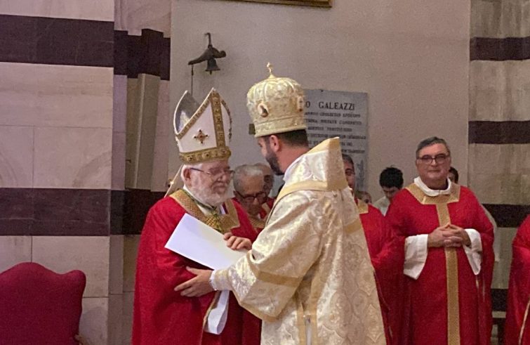 Al termine della messa, sotto il loggione del palazzo comunale, il sindaco e l’assessore alle politiche sociali hanno consegnato al vescovo Semenyshyn un assegno simbolico di oltre 3mila euro: sono le risorse rimaste del fondo di emergenza istituito all’indomani dello scoppio della guerra in Ucraina.
