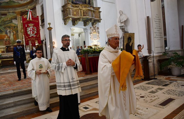 “Bella al sol quando d’oro ammantata… Ave o pura Regina dei Santi… a Spoleto ti dava un guerrier”. A Spoleto, dal 13 al 15 agosto, nelle celebrazioni per le solennità dell’Assunta, ha risuonato ancora una volta l’inno alla Santissima Icone. Celebrazioni che sono state presiedute dall’arcivescovo di Spoleto-Norcia, mons. Renato Boccardo, e si sono tenute nella basilica cattedrale.