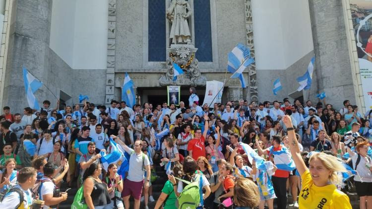 Oltre mille giovani argentini presenti alla Gmg di Lisbona attendono con gioia l’arrivo del Papa argentino. Nel frattempo, ieri hanno partecipato alla messa degli argentini nella parrocchia di São João do Brito, nella capitale portoghese. L’Eucaristia è stata presieduta dal vescovo ausiliare di San Isidro, mons. Raúl Pizarro, e concelebrata dal vescovo di San Justo, mons. Eduardo García, dal vescovo di Formosa, mons. José Conejero Gallego, e da diversi sacerdoti argentini che accompagnavano le delegazioni. Erano presenti anche l’ambasciatore argentino in Portogallo, Rodolfo Gil, il console Mariano Guida, il ministro dell’ambasciata Martín Soto e la segretaria dell’ufficio diplomatico, María Laje Anaya. I gruppi di giovani argentini si sono identificati con bandiere e molti indossavano magliette con la frase “Maria si è alzata e se n’è andata senza indugio”.