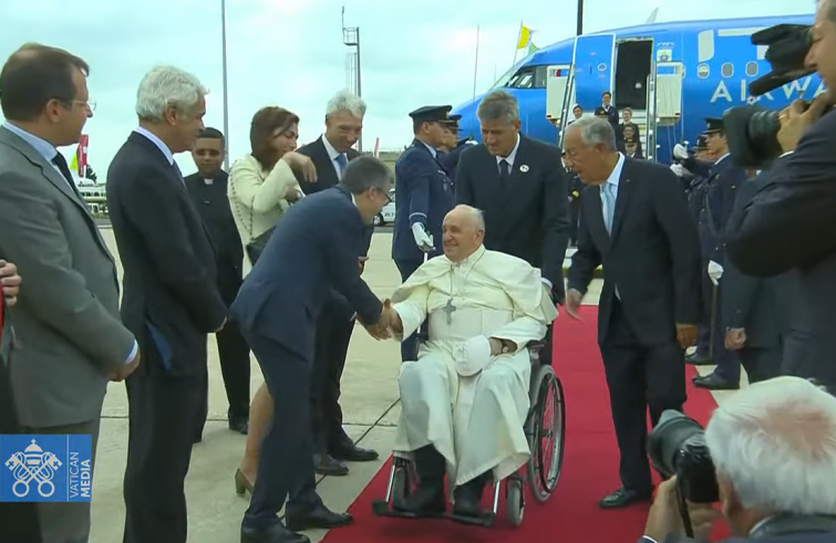 Il Papa è atterrato a Lisbona dove lo attende il “popolo” della Gmg, accorso nella capitale portoghese da ogni parte del mondo. L’aereo papale è arrivato alla base aerea di Figo Maduro a Lisbona ed è sceso dall’ascensore, dopo il saluto del nunzio apostolico e del capo del protocollo. Subito dopo il Papa viene accolto dal presidente della Repubblica, Marcelo Rebelo de Sousa, per la cerimonia di accoglienza ufficiale, senza discorsi. Dopo il saluto della Guardia d’Onore, il Papa e il presidente portoghese attraversano la Alas de honra e si dirigono verso la VIP Lounge, allestita nell’Hanger, dove ha luogo la presentazione delle due delegazioni, portoghese e vaticana, e dove si trattengono per un breve incontro. Poi il trasferimento all’ingresso principale del Palácio Nacional de Belém, Rua de Belém, distante poco meno di setete chilometri. Dopo la visita di cortesia al presidente e l’incontro privato, Papa Francesco pronuncerà il suo primo discorso in terra portoghese, al Centro Cultural de Belém, rivolto alle autorità, alla società civile e al Corpo Diplomatico. Il secondo momento pubblico della prima giornata papale in Portogallo è previsto questo pomeriggio, alle 17.30 (18.30 ora di Roma), al Mosteiro dos Jerónimos, dove il Papa reciterà i Vespri con i vescovi, i sacerdoti, i diaconi, i consacrati/e, i seminaristi e gli operatori pastorali. Francesco si reca in Portogallo per la seconda volta, dopo la visita al Santuario di Fatima avvenuta il 12 e 13 maggio del 2017, in occasione del centenario delle Apparizioni della Beata Vergine Maria alla Cova da Iria. Sarà il quarto Pontefice a visitare il Paese lusitano, dopo San Paolo VI, nel 1967, San Giovanni Paolo II, nel 1982, nel 1991 e nel 2000, e Benedetto XVI, nel 2010.