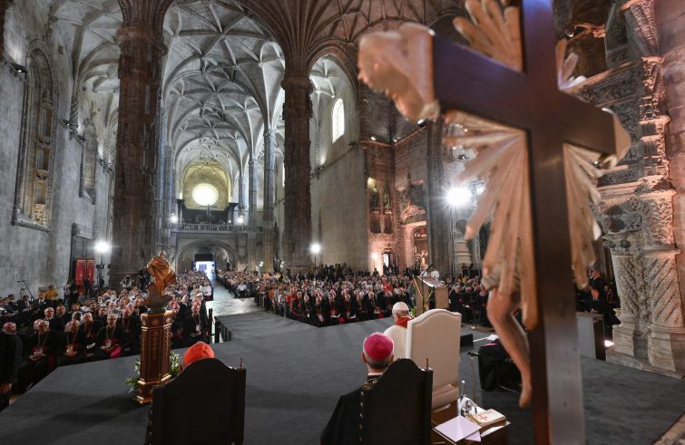 “La Chiesa è sinodale, è comunione, aiuto reciproco, cammino comune”. Lo ha ribadito il Papa, durante l’incontro con il clero portoghese, nel Monastero dos Jerònimos di Lisbona. “Sulla barca della Chiesa ci dev’essere spazio per tutti”, l’invito durante i Vespri ai presenti, esortati a “portare avanti insieme la pastorale”: “Tutti i battezzati sono chiamati a salirvi e a gettare le reti, impegnandosi in prima persona nell’annuncio del Vangelo”. “La Chiesa non sia una dogana in cui si seleziona chi sì e chi no”, ha aggiunto a braccio: “Non poniamo dogane alla Chiesa”. “È una grande sfida, specialmente nei contesti in cui i sacerdoti e i consacrati sono affaticati perché, mentre aumentano le esigenze pastorali, sono sempre di meno”, ha argomentato Francesco: “A questa situazione, però, possiamo guardare come un’occasione per coinvolgere, con slancio fraterno e sana creatività pastorale, i laici”. “Se non c’è dialogo, corresponsabilità e partecipazione, la Chiesa invecchia”, il monito del Papa: “mai un vescovo senza il proprio presbiterio e il popolo di Dio; mai un sacerdote senza i confratelli; e tutti insieme – sacerdoti, religiose, religiosi e fedeli laici – come Chiesa, mai senza gli altri, mai senza il mondo. Senza mondanità, ma non senza il mondo. Nella Chiesa ci si aiuta, ci si sostiene a vicenda e si è chiamati a diffondere anche fuori un clima di fraternità costruttivo”. “Portare l’accoglienza del Vangelo in una società multiculturale; portare la vicinanza del Padre nelle situazioni di precariato e di povertà che crescono, soprattutto tra i giovani; portare l’amore di Cristo dove la famiglia è fragile e le relazioni sono ferite; trasmettere la gioia dello Spirito dove regnano demoralizzazione e fatalismo”, la consegna finale. “Il proselitismo non è cristiano”, ha ribadito a braccio il Santo Padre.