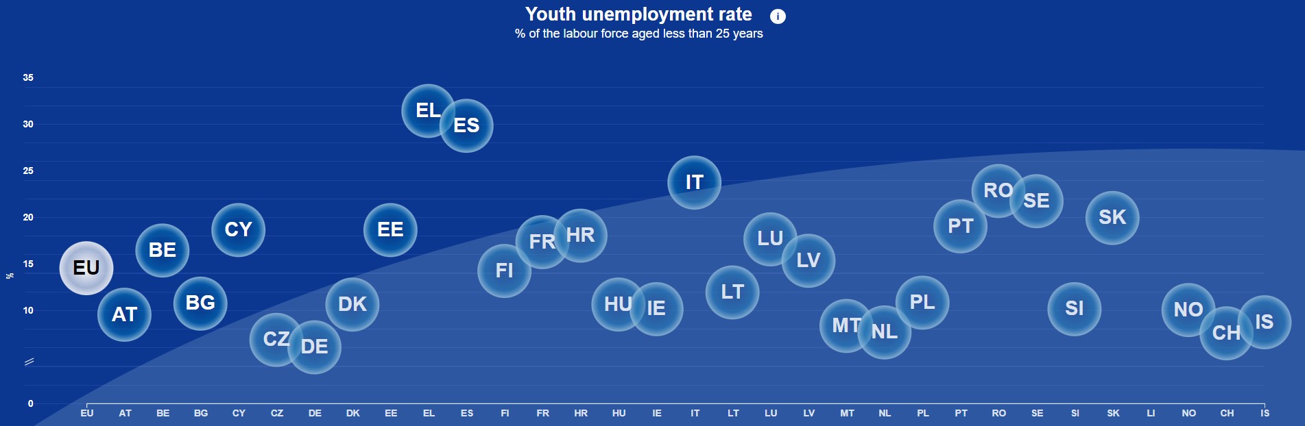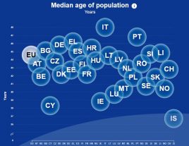 Si scopre ad esempio che l’Italia è il Paese con la media d’età più alta fra la popolazione europea; che la popolazione più giovane si trova in Irlanda e la più anziana in Italia; per quanto riguarda la disoccupazione giovanile il record spetta alla Grecia, seguita da Spagna e Italia. Per quanto attiene la popolazione a rischio povertà, Romania e Bulgaria sono i Paesi più esposti.