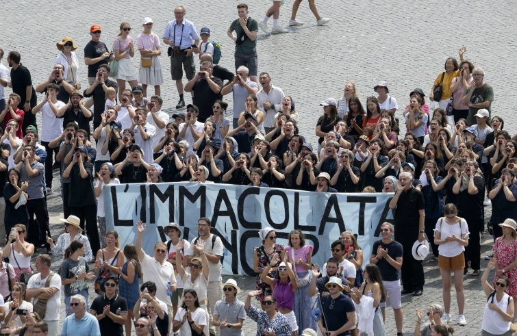 Poi i saluti ai romani e pellegrini d’Italia e di tanti Paesi. “In particolare saluto il gruppo parrocchiale venuto da Madrid; i sacerdoti della diocesi di Molfetta-Ruvo-Giovinazzo-Terlizzi, con il loro vescovo; i fedeli di San Gaetano da Thiene in Melìa; le famiglie del quartiere Pizzo Carano di San Cataldo e i ciclisti della Ciociaria. Saluto i ministranti dell’unità pastorale di Codevigo, nella diocesi di Padova, in pellegrinaggio a Roma con il loro parroco”.