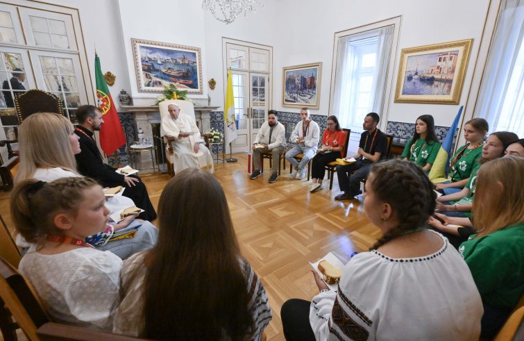 Prima di lasciare la Nunziatura apostolica di Lisbona, questa mattina, giovedì 3 agosto, Papa Francesco ha incontrato un gruppo di quindici giovani pellegrini dall’Ucraina accompagnati da Denys Kolada, consulente per il Dialogo con le organizzazioni religiose presso il Governo ucraino. Lo rende noto la Sala Stampa vaticana, riferendo che dopo aver ascoltato le “toccanti storie” dei ragazzi, il Papa ha rivolto loro alcune parole, “manifestando la sua vicinanza, ‘dolorosa e di preghiera’”. L’incontro è durato circa 30 minuti; al termine, Francesco e i ragazzi hanno recitato insieme il Padre Nostro, “con il pensiero rivolto alla martoriata Ucraina”.