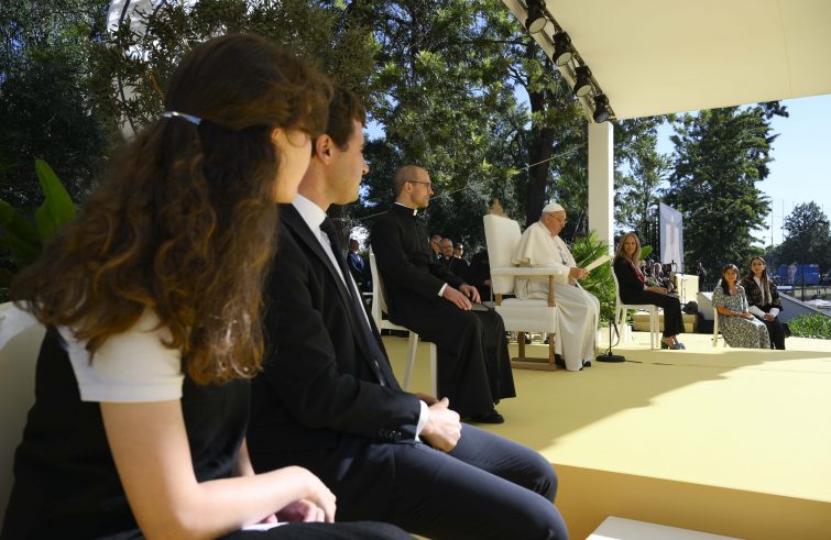 “Anche questo anziano che vi parla sogna che la vostra generazione divenga una generazione di maestri. Maestri di umanità. Maestri di compassione. Maestri di nuove opportunità per il pianeta e i suoi abitanti. Maestri di speranza, maestri che diventano custodi del pianeta devastato da una catastrofe ecologica”. Lo ha rivelato il Papa, incontrando i giovani universitari presso l’Università cattolica portoghese di Lisbona, primo appuntamento pubblico della seconda giornata in Portogallo. “Dobbiamo riconoscere l’urgenza drammatica di prenderci cura della casa comune”, l’appello di Francesco: “Tuttavia, ciò non può essere fatto senza una conversione del cuore e un cambiamento della visione antropologica alla base dell’economia e della politica”. “Non ci si può accontentare di semplici misure palliative o di timidi e ambigui compromessi”, il monito del Papa, secondo il quale “le vie di mezzo sono solo un piccolo ritardo nel disastro”. Di qui la necessità di “farsi carico di quello che purtroppo continua a venir rinviato: la necessità di ridefinire ciò che chiamiamo progresso ed evoluzione. Perché, in nome del progresso, si è fatto strada il regresso”. “Voi siete la generazione che può vincere questa sfida”, l’incoraggiamento di Francesco: “avete gli strumenti scientifici e tecnologici più avanzati ma, per favore, non cadete nella trappola di visioni parziali. Non dimenticate che abbiamo bisogno di un’ecologia integrale, di ascoltare la sofferenza del pianeta insieme a quella dei poveri; di mettere il dramma della desertificazione in parallelo con quello dei rifugiati; il tema delle migrazioni insieme a quello della denatalità; di occuparci della dimensione materiale della vita all’interno di una dimensione spirituale. Non polarizzazioni, ma visioni d’insieme”.
