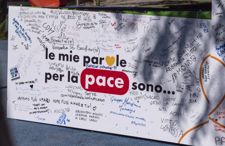 (da Lisbona) “Le mie parole per la pace nel mondo sono…”. Uno spunto che ha accesso le riflessioni dei giovani. Hanno continuato, infatti, con le loro parole questo pensiero, durante la tappa a Casa Italia. Su appositi “wall”, come dei muri, installati nell’atro della “base” dei pellegrini italiani, hanno lasciato il loro messaggio ed espresso la loro visione perché ci sia davvero pace nel mondo. Lucia, 11 anni, non ha dubbi: “Abbiate pietà l’uno dell’altro!”, scrive. “La pace dipende da tutti e tutte noi”, scrive qualcun altro. E poi c’è chi cita sant’Agostino: “Ama e fa ciò che vuoi”. Le parole di Bianca, da Siena, suonano come un incoraggiamento: “La felicità è una scelta, vivi con Dio”. E, poi, ancora: “Amati e sorridi, così potrai splendere”; “Lascia che Cristo ti illumini del suo amore”; “Farsi avanti per aiutare il prossimo smettendo di dare le spalle”. L’Azione Cattolica di Palmi chiosa: “Non dobbiamo guardarci con i nostri occhi, ma con gli occhi da innamorati con cui Dio ci guarda”.