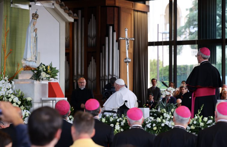 La Chiesa “è madre: porte aperte per tutti, per facilitare l’incontro con Dio; e posto per tutti, perché ognuno è importante agli occhi del Signore e della Madonna”. È l’immagine scelta dal Papa a Fatima, nel discorso dopo la recita del Rosario con i giovani ammalati. “La cappellina in cui ci troviamo è una bella immagine della Chiesa”, ha detto Francesco dalla Cappella delle apparizioni: “accogliente e senza porte”. Poi, come ha fatto più volte in questa trasferta portoghese, Francesco ha abbandonato il testo scritto e ha proseguito a braccio. “Quando ha saputo che sua cugina Elisabetta era incinta Maria è uscita in fretta, correndo, con questa ansia di aiutare. Questa Vergine che esce in fretta: ‘Nostra signora affrettata’. E si affretta per venire ad aiutarci, si affretta perché è madre. E così accompagna la vita di Gesù e non si nasconde dopo la Risurrezione. Accompagna i discepoli, insieme allo Spirito Santo accompagna la Chiesa che crescerà dopo la Pentecoste. ‘Nostra Signora affrettata’ che accompagna, non è mai protagonista: prima accoglie, e poi indica Gesù”. “Maria nella sua vita non ha fatto altro che indicare Gesù”, ha sintetizzato il Papa: “Fate quello che lui vi dirà, seguite Gesù”. Poi Francesco ha mimato i due gesti di Maria, che “accoglie tutti e indica Gesù, e questo lo fa un pò affrettata. Ogni volta che veniamo qui ricordiamoci questo”. Maria, per il Papa, “vuole che l’incredulità di tanti cuori si rivolga a Gesù: con la sua presenza ci indica Gesù, con questo gesto ci indica Gesù. E noi la sentiamo molto vicina, ‘Maria affrettata’”. “Gesù ci ha amato al punto da identificarci con noi e ci chiede di collaborare con noi”, ha spiegato Francesco: “E Maria ci invita a camminare nella vita camminando con lui”. “Guardiamo l’immagine di Maria e ognuno pensi”, l’invito del Papa: “Che cosa mi dice Maria come madre? Che cosa ci sta indicando? Gesù o alcune cose che nel nostro cuore non funzionano bene? Maria cosa mi sta indicando? Facciamo silenzio e ognuno nel suo cure dica: ‘Madre, cosa stai indicando a me? Cosa c’è nella tua vita che ti preoccupa, che ti commuove, che ti interessa e tu lo indichi? Maria ci indica nel cuore perché Gesù venga. Sentiamo la presenza di Maria, la Madre che dice sempre: ‘Fate quello che Gesù vi dirà’. E dice a Gesù: ‘Fai quello che loro ti chiedono’. Questa è Maria: Nostra Signora affrettata per essere vicina a noi. Che lei benedica tutti noi. Amen!”.