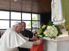 Il Papa è arrivato a Fatima, prima tappa del quarto giorno del viaggio apostolico in Portogallo per la Gmg di Lisbona, dove stasera nel Parco Tejo è in programma la Veglia con i giovani, preludio alla messa conclusiva del giorno seguente. Dopo la messa in privato di questa mattina, Francesco ha lasciato la nunziatura apostolica per trasferirsi in auto alla base aerea di Figo Maduro di Lisbona da dove, alle ore 8 (9 ora di Roma), è partito – a bordo di un elicottero militare – alla volta di Fatima. Al suo arrivo in forma privata all’eliporto di Fátima, Francesco è accolto dal vescovo di Leiria-Fátima e presidente della Conferenza episcopale del Portogallo, mons. José Ornelas Carvalho. Quindi si trasferisce in auto al Santuario di Nostra Signora di Fátima, dove – dopo aver effettuato alcuni giri in papamobile tra i fedeli – alle ore 9.30 (10.30 ora di Roma), il Santo Padre guida la recita del Rosario con i Giovani ammalati presso la Cappellina delle Apparizioni. Dopo essere entrato nella Cappella delle Apparizioni, Papa Francesco venera l’immagine della Beata Vergine Maria di Fátima e sosta in preghiera silenziosa. Due bambini offrono al Santo Padre dei fiori che egli depone ai piedi della Vergine e lascia in dono un Rosario d’oro. Al termine della recita del Rosario e dopo l’indirizzo di saluto del vescovo di Leiria-Fátima, il Santo Padre pronuncia il suo discorso. Dopo la preghiera, la benedizione finale e il canto, Papa Francesco saluta alcuni giovani ammalati. Quindi si reca in auto all’eliporto di Fátima da dove, alle ore 10.45 (11.45 ora di Roma), a bordo di un elicottero militare per rientrare alla Base Aerea di Figo Maduro di Lisbona e far ritorno alla nunziatura apostolica dove pranza in privato.