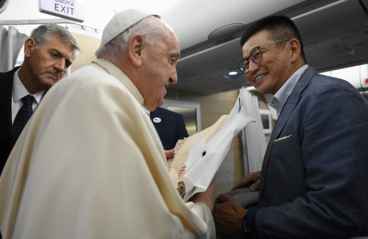 Papa Francesco, dopo il saluto ai circa settanta giornalisti che lo accompagnano a bordo del volo per la Mongolia, stimolato da un commento di uno di loro, ha preso spunto dalla scarsa densità della popolazione nel vasto territorio della nazione: “Andare in Mongolia è andare presso un popolo piccolo in una terra grande. La Mongolia sembra non finire e gli abitanti sono pochi, un popolo piccolo (poco numeroso) di grande cultura. Credo che ci farà bene capire questo silenzio, così lungo, così grande. Ci aiuterà a capire cosa significa ma non intellettualmente, capirlo con i sensi”.