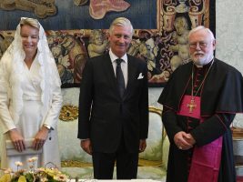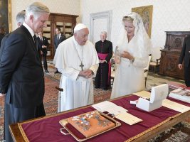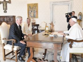 E’ durato circa 20 minuti il colloquio tra il Papa e i reali del Belgio, Philippe e Mathilde, ricevuti oggi in udienza nella mattinata di oggi. Il re e la regina del Belgio si sono successivamente incontrati con mons. Paul Richard Gallagher, segretario per i Rapporti con gli Stati e le Organizzazioni Internazionali. “Durante i cordiali colloqui in Segreteria di Stato – informa la Sala Stampa della Santa Sede – è stato espresso compiacimento per le buone relazioni tra la Santa Sede e il Belgio, rilevando il ruolo della fede cristiana e della Chiesa cattolica. Ci si è quindi soffermati su questioni di comune interesse e su alcune problematiche di carattere internazionale, con speciale riferimento all’Africa e alla guerra in Ucraina e all’impegno per la pace tra i popoli”. Papa Francesco ha donato ai reali belgi un bassorilievo in bronzo raffigurante un dettaglio della porta centrale della Basilica di San Pietro, oltre ai consueti volumi dei documenti papali, al Messaggio per la pace di quest’anno, al volume sull’Appartamento Pontificio delle Udienze, a cura della Prefettura della Casa Pontificia, e al libro sulla Statio Orbis del 27 marzo 2020, a cura della Lev. Il re e la Regina del Belgio hanno donato al Papa un’opera in ceramica di un’artista belga raffigurante il Buon Pastore.