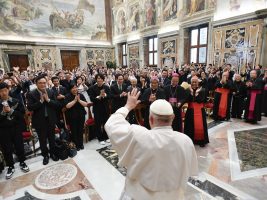 “È importante allargare lo spazio della collaborazione pastorale, per portare avanti insieme l’annuncio del Vangelo; sacerdoti, religiose e religiosi, e laici: tutti insieme, senza chiusure”. Lo ha detto Papa Francesco ricevendo stamani in udienza un gruppo di Pellegrini dalla Corea in Vaticano, nel giorno del martirio di Sant’Andrea Kim Taegon, avvenuto 177 anni fa, e in occasione della benedizione della sua statua, installata in una delle nicchie esterne della Basilica di San Pietro. “La vostra Chiesa, che sorge dal laicato ed è fecondata dal sangue dei martiri, si rigenera attingendo alle sue radici lo slancio evangelico generoso dei testimoni e la valorizzazione del ruolo e dei carismi dei laici”.