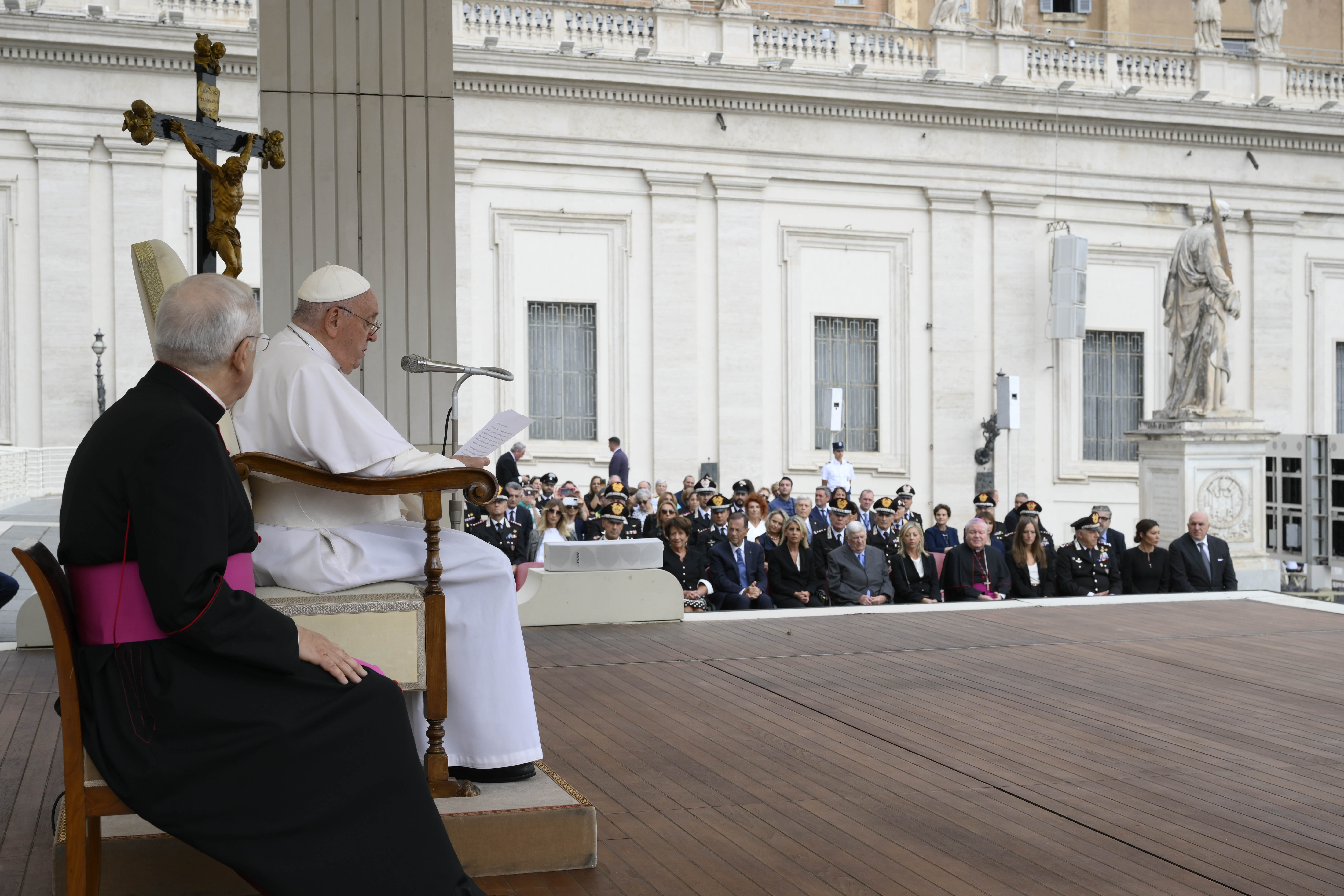 “La giustizia non tende semplicemente a comminare delle pene a chi ha sbagliato, ma a ristabilire le persone nel segno del rispetto e del bene comune”. Lo ha detto Papa Francesco nel suo discorso agli ufficiali e ai militare dell’Arma dei Carabinieri, ricevuti oggi in udienza in piazza San Pietro, durante il quale ha ricordato il sacrificio del vice brigadiere Salvo D’Acquisto. “A voi, che siete quotidianamente impegnati a servizio della giustizia e della legalità – e quanto bisogno di legalità c’è oggi! – vorrei dire che tutto questo trova la sua ragione e il suo fine ultimo nell’amore”.