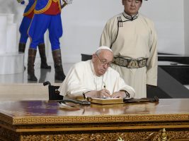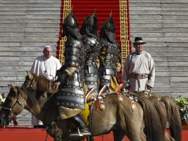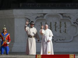 Dopo la giornata di riposo ieri al suo arrivo a Ulaanbaatar, il 43° viaggio apostolico di Papa Francesco entra nel vivo con l’incontro con rappresentanti delle istituzioni e della società civile e il corpo diplomatico. Questa mattina, dopo aver celebrato la santa messa in privato, Papa Francesco si è trasferito in auto in Piazza Sükhbaatar per la cerimonia di benvenuto in Mongolia, ai piedi della imponente statua del condottiero Chinggis Khaan, dinanzi a centinaia di militari in piedi in divisa o a cavallo in armatura. Al suo arrivo il Papa è accolto dal presidente della Mongolia, Ukhnaagiin Khürelsükh.