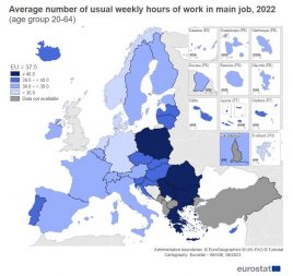 (Bruxelles) Quanto tempo alla settimana lavorano solitamente gli europei? Il conteggio lo ha realizzato Eurostat, con una ricerca pubblicata oggi. “Nel 2022, la settimana lavorativa abituale per le persone di età compresa tra 20 e 64 anni nell’Ue era in media di 37,5 ore”. “Differenze significative” si registrano tra i Paesi dell’Ue (e tra i settori produttivi). Le settimane lavorative più lunghe sono state registrate, ad esempio, in Grecia (41,0 ore), Polonia (40,4), Romania e Bulgaria (40,2 entrambe). Al contrario, i Paesi Bassi hanno avuto la settimana lavorativa più breve (33,2 ore), seguiti da Germania (35,3) e Danimarca (35,4). Il dato italiano è di 37,4 ore la settimana, appena sotto la media comunitaria. Un dato appare evidente: non vi è corrispondenza tra ore di lavoro medie e Pil prodotto nei singoli Paesi Ue.