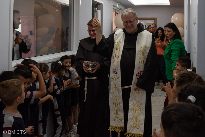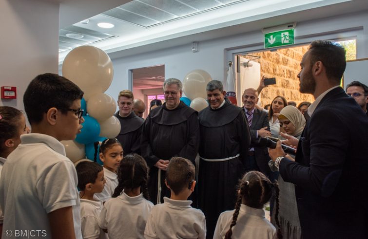 Taglio del nastro per le nuove aule della scuola Terra Sancta di Beit Hanina, uno dei quartieri arabi alla periferia di Gerusalemme, sulla strada che porta verso Ramallah. Completamente rinnovate durante l’estate, le nuove aule sono state inaugurate dal Custode di Terra Santa, padre Francesco Patton, accolto dal direttore delle scuole di Terra Santa e Vicario della Custodia, padre Ibrahim Faltas, e i due frati della comunità, Raffaele Tayem, che da un anno è parroco, e Paulo Paulista, nuovo responsabile della scuola. Presente anche il vecchio responsabile, padre George Haddad, ora incaricato per la scuola Terra Sancta di Betlemme.