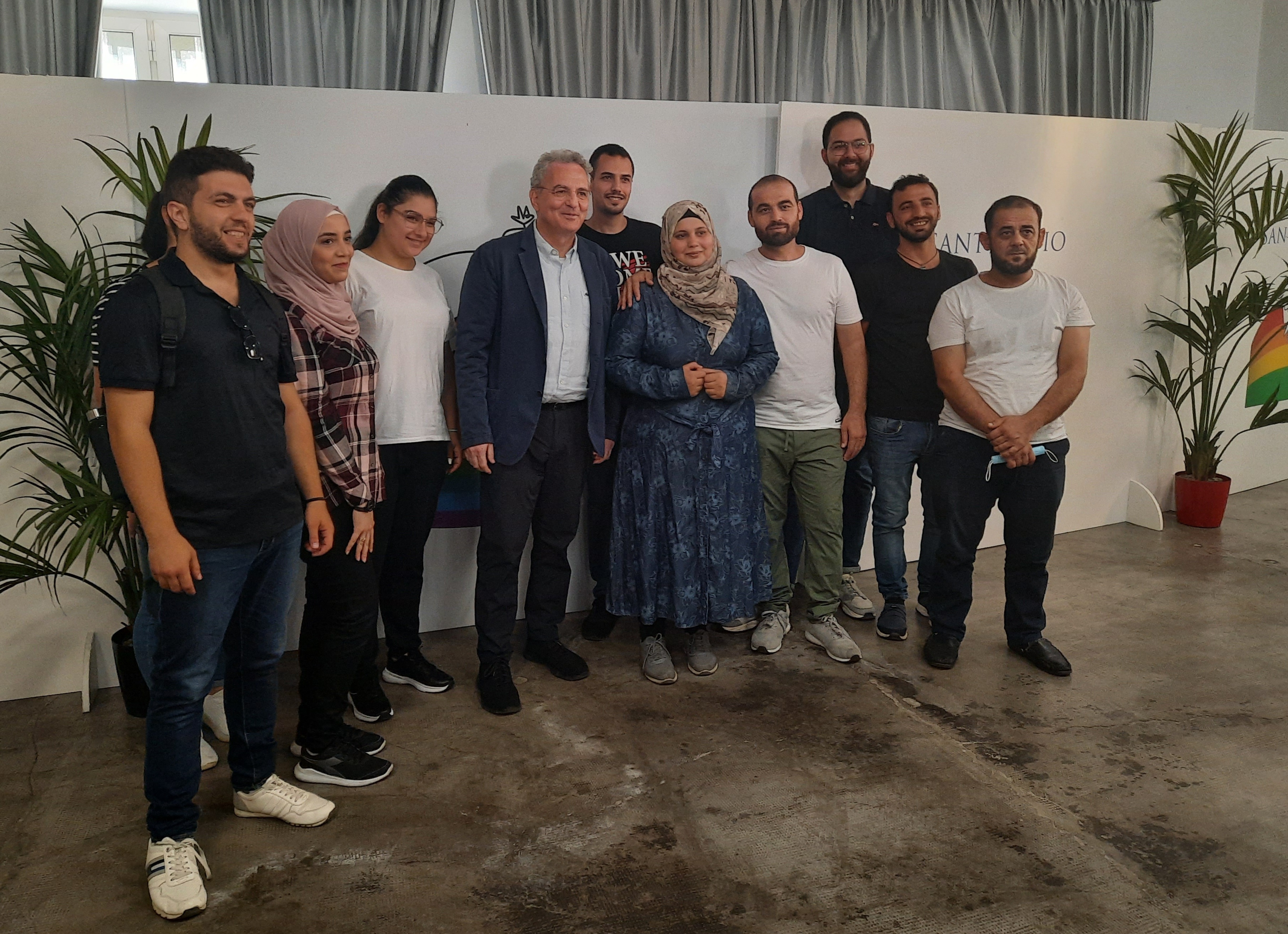 Marco Impagliazzo insieme ai rifugiati arrivati in Italia con i corridoi umanitari – Foto: SIR