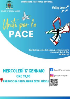 È in programma per mercoledì 17 gennaio, alle ore 19 nella parrocchia di Santa Maria degli Angeli a Termoli, l’arrivo dall’Abruzzo della Croce della pace che farà sosta in Molise per 14 giorni, facendo tappa in diverse parrocchie della città e in altri paesi. Sarà presente all’appuntamento, animato dal gruppo Rise-Up, il vescovo mons. Gianfranco De Luca. L’iniziativa è promossa dalla Pastorale giovanile interregionale e si inserisce in un percorso di riflessione, confronto e proposta per vivere insieme un momento di unione e di pace ed educazione alla missionarietà. Frutto dell’esperienza della Giornata mondiale della gioventù di Lisbona, e di un contest in cui i giovani delle varie diocesi hanno presentato la loro idea di croce della pace, selezionando quella della diocesi di L’Aquila come simbolo che rappresenterà i giovani di Abruzzo e Molise nel loro impegno a raccontare la pace.