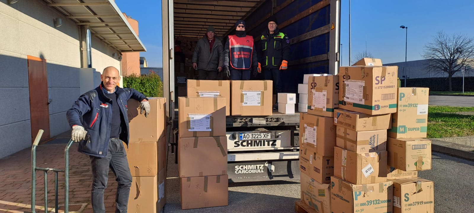 Un autoarticolato ha varcato, ieri, la frontiera per entrare in Ucraina per raggiungere Kiev. È pieno di 216 scatole (8.988 pezzi) di barrette energetiche, sei presidi ortopedici e 296 scatoloni con i beni di vario genere, dal vestiario agli omogeneizzati.