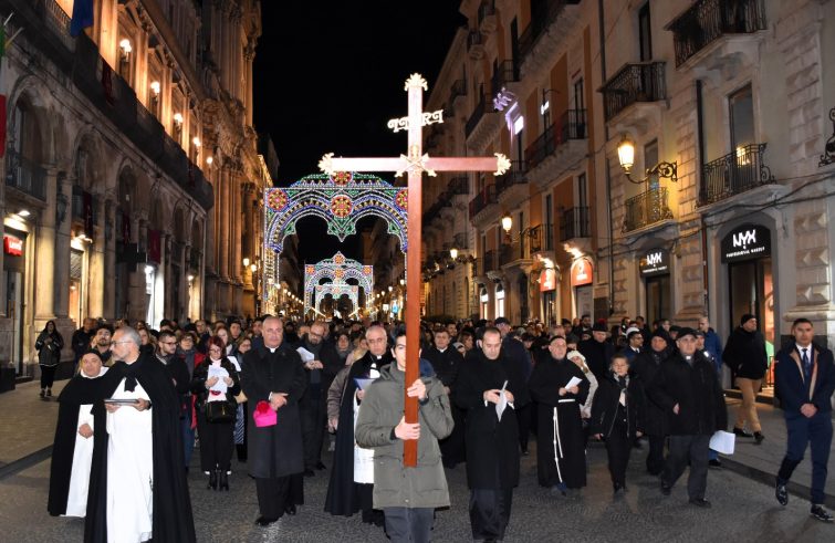 Lungo il pellegrinaggio, che ha toccato piazza Stesicoro e poi si è snodato per via Etnea fino alla cattedrale, i fedeli hanno seguito la Croce di Cristo con preghiere e canti. Nelle varie tappe l’arcivescovo ha fatto pregare per la pace nel mondo, per il riscatto della città di Catania, per i carcerati, per le donne vittime della violenza e per tutte le persone e i minori in difficoltà.