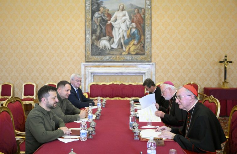 Dopo il colloquio privato, durato circa 35 minuti, con Papa Francesco, il presidente dell’Ucraina, Volodymyr Zelensky, ha incontrato il card. Pietro Parolin, segretario di Stato, accompagnato da mons. Paul Richard Gallagher, segretario per i Rapporti con gli Stati e le Organizzazioni internazionali della Segreteria di Stato. “I colloqui in Segreteria di Stato – informa la Sala Stampa della Santa Sede – sono stati dedicati allo stato della guerra e alla situazione umanitaria in Ucraina, nonché alle vie che potrebbero metterle fine, portando ad una pace giusta e stabile nel Paese. Inoltre, sono state esaminate anche alcune questioni relative alla vita religiosa nel Paese”.