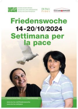 Nel mese missionario, dal 14 al 20 ottobre l’Ufficio missionario diocesano di Bolzano-Bressanone e l’istituto De Pace Fidei organizzano l’iniziativa “Settimana della pace”, durante la quale due donne cristiane originarie della Palestina, Sumaya Farhat Naser e Hiyam Marzouga-Awad, terranno conferenze aperte al pubblico e incontreranno studenti nelle scuole e giovani cresimandi in vari luoghi dell’Alto Adige.