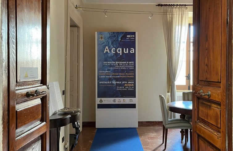 Quest’anno, in sinergia con il vescovo, mons. Gianfranco De Luca, partendo dal concetto di vita, si è deciso di realizzare una mostra sul tema dell’acqua, poiché, spiega una nota della diocesi, “l’acqua è la vita e la morte, da sempre. Per la letteratura antica l’acqua è la possibilità della crescita della civiltà, ma rappresenta anche il pericolo della morte. Le navi solcano l’acqua per trovare condizioni migliori o aumentare il benessere ma, allo stesso tempo, l’acqua coincide sempre con l’attraversamento di un elemento estraneo e non controllabile, molto più grande di se stessi, da cui si è affascinati e di cui però si è anche in balia. In tutte le religioni l’acqua ricorda il grande diluvio originario e purificatore come la rinascita da quella distruzione. È questa duplicità di vita e morte e, inversamente, di morte e vita, che i cristiani hanno conosciuto e ripreso. Acqua è il segno materiale del battesimo, che è il discendere negli abissi della morte ed è risorgere. L’acqua è il lavarsene le mani di Ponzio Pilato”. Anche dal punto di vista biologico e sociale l’acqua ha duplice valore. Essa rimane l’elemento fondamentale del cosmo e l’icona della grande purità, che S. Francesco ricordava nel suo canto: “Laudato sì, mi’ Signore, per sor’acqua, la quale è molto utile et umile et pretiosa et casta”, la possibilità della fertilità della terra e del succo dei frutti. Ma è anche “l’occasione di inondazioni, alluvioni, disastri provocati dall’incuria e dall’avidità”.